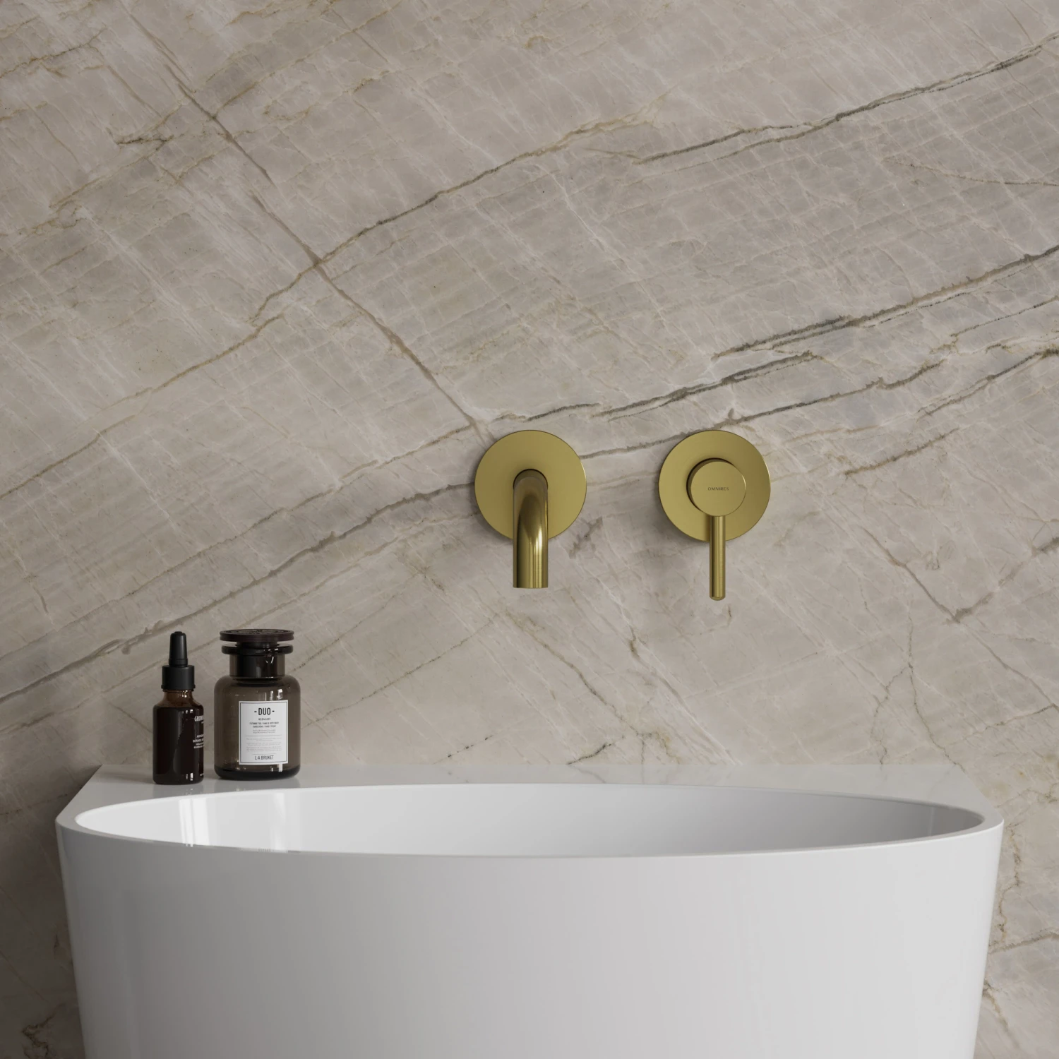 Mosiądz szczotkowany jest szlachetnym wykończeniem w odcieniu chłodnego złota i satynowej, szczotkowanej powierzchni. Powłoka została wykonana w zaawansowanej technologii PVD.
