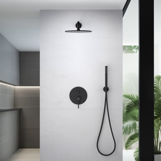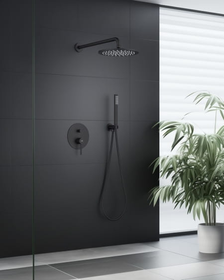 Blue Water Boston Zestaw prysznicowy podtynkowy z deszczownicą i prysznicem BOS-ZKP.150 CZARNY MAT