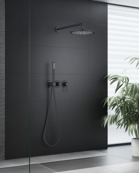 Blue Water Boston Zestaw prysznicowy podtynkowy z deszczownicą i prysznicem BOS-ZKP.350 CZARNY MAT