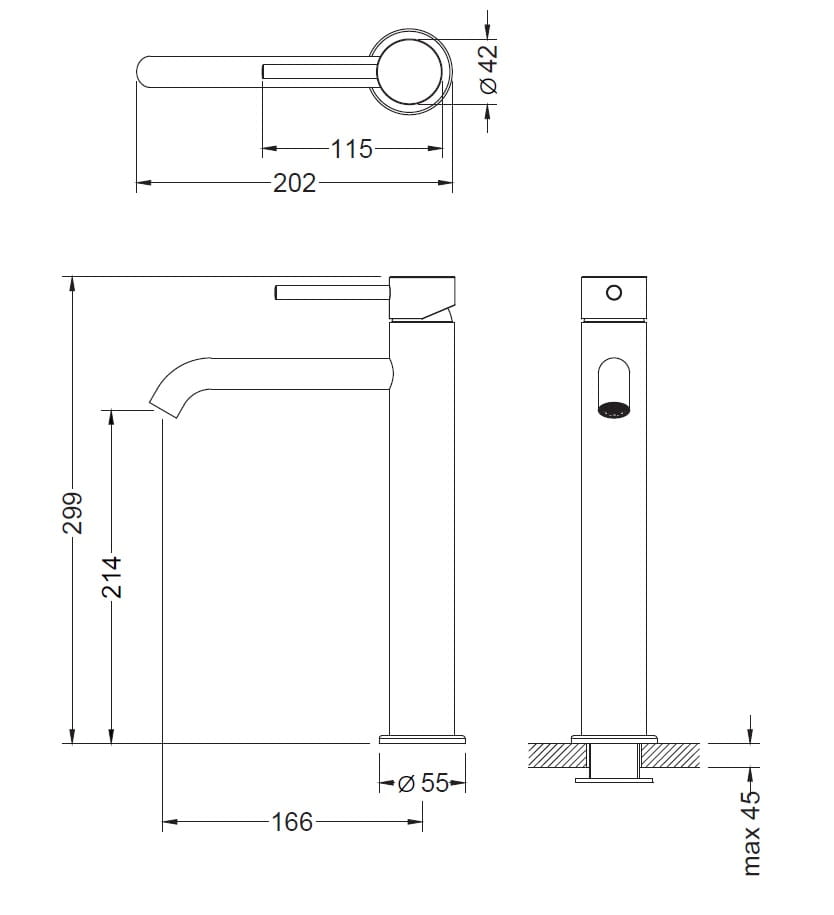 Blue Water Boston bateria umywalkowa wysoka BOS-BUW.050 GRAFIT (GUN METAL)
