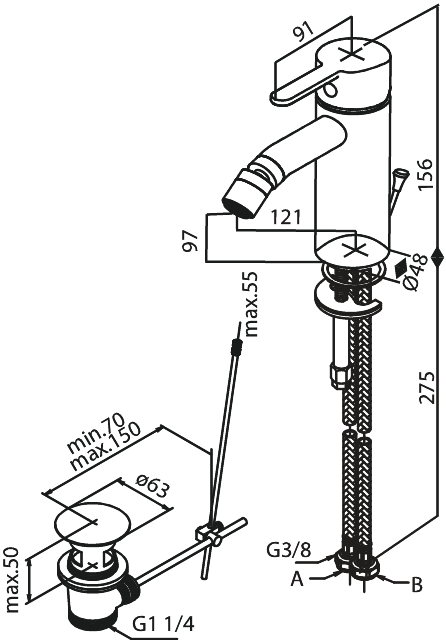 Damixa Bateria bidetowa stal pvd 748314600