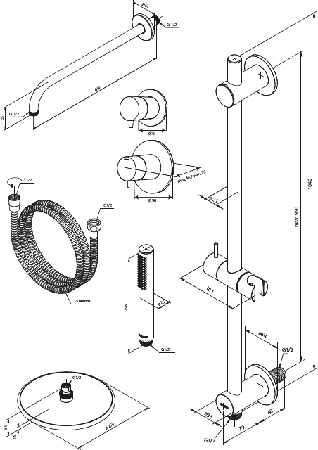 Damixa Silhouet DR1 - Podtynkowy termostatyczny zestaw prysznicowy polerowany szczotkowana miedź pvd 570518700
