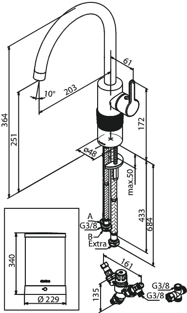 Damixa Silhouet Kran z wrzącą wodą szczotkowany grafit pvd 746775500
