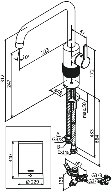 Damixa Silhouet Kran z wrzącą wodą szczotkowany grafit pvd 746875500