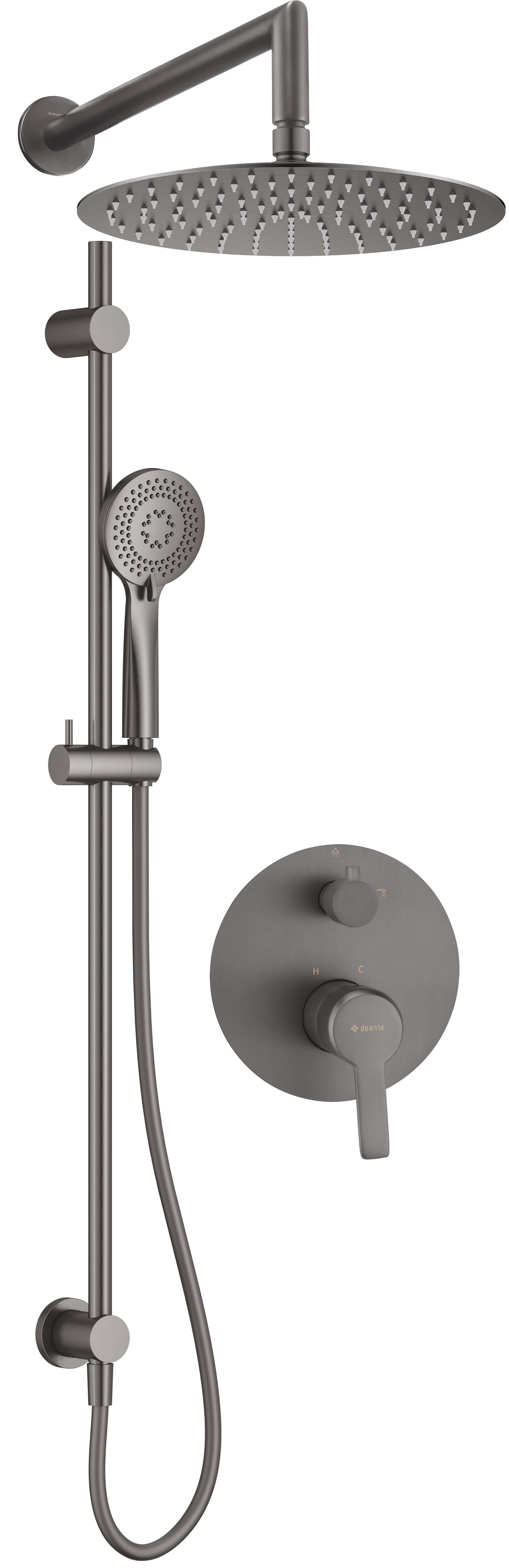 Deante ARNIKA Zestaw prysznicowy podtynkowy z drążkiem - z głowicą prysznicową titanium NAC_D6QP