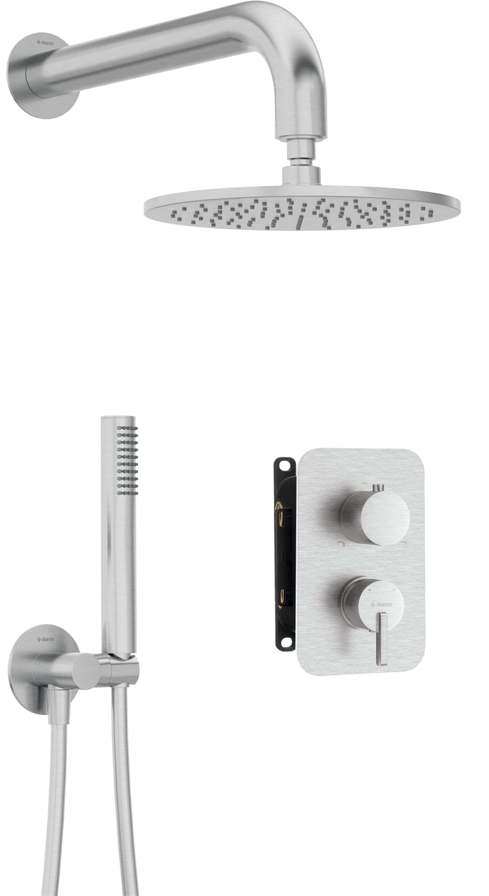 Deante Silia Zestaw prysznicowy podtynkowy z BOXem mieszaczowym - z głowicą prysznicową 25 cm stal szczotkowana BXYYFQSM