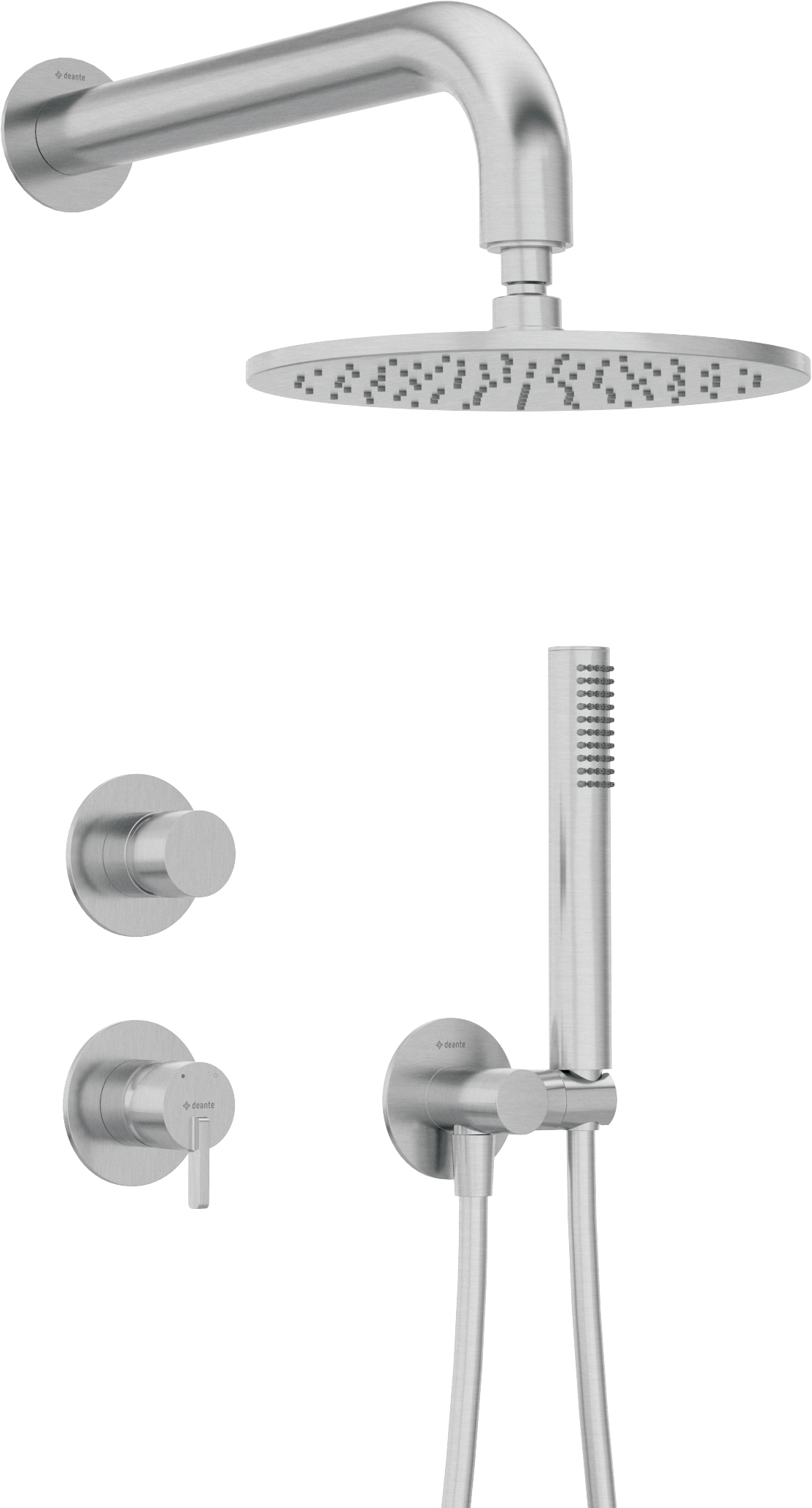 Deante Silia Zestaw prysznicowy podtynkowy z głowicą prysznicową 25 cm stal szczotkowana NQS_F9YK