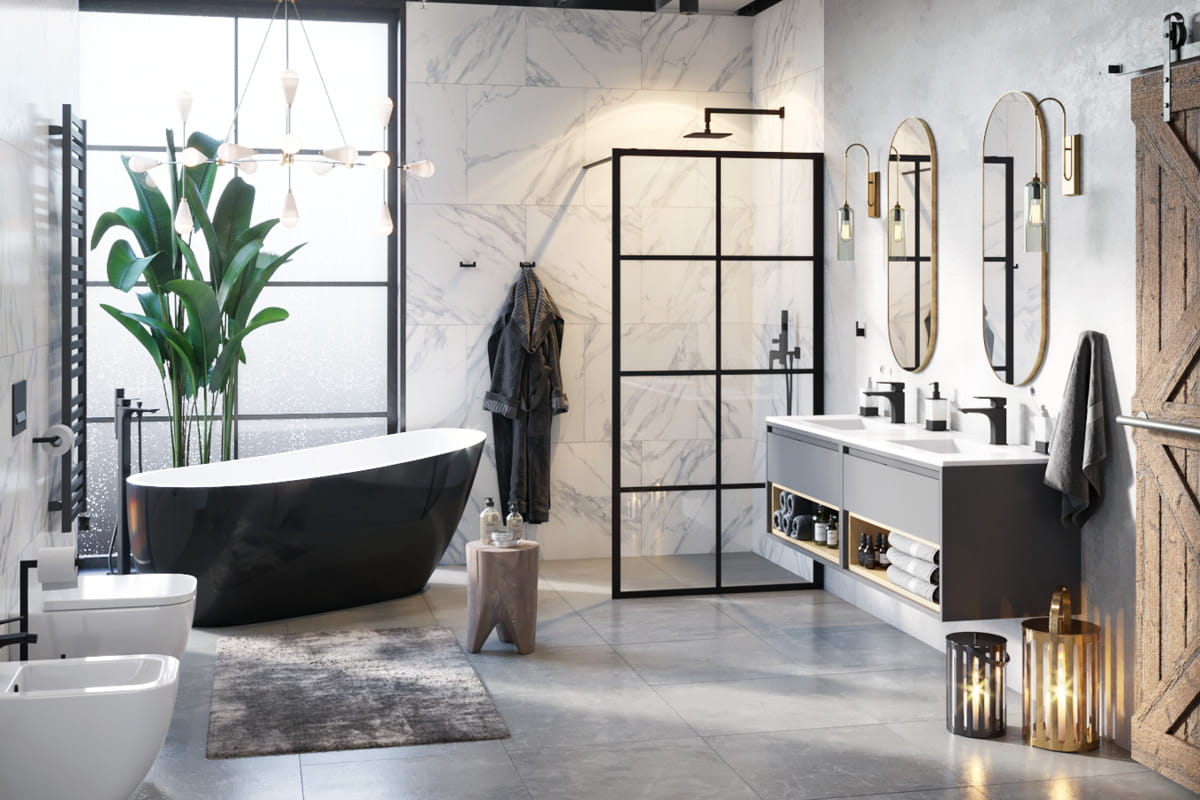 Kabiny walk-in serii Fabrika stanowią idealne rozwiązanie, aby nadać wnętrzu loftowego, industrialnego stylu.