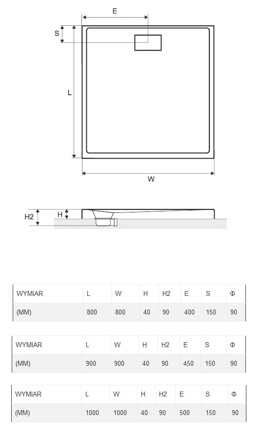 EXCELLENT ZERO 90x90 cm BRODZIK AKRYLOWY KWADRATOWY Z KLAPKĄ BIAŁY BREX.1202.090.090.WHN