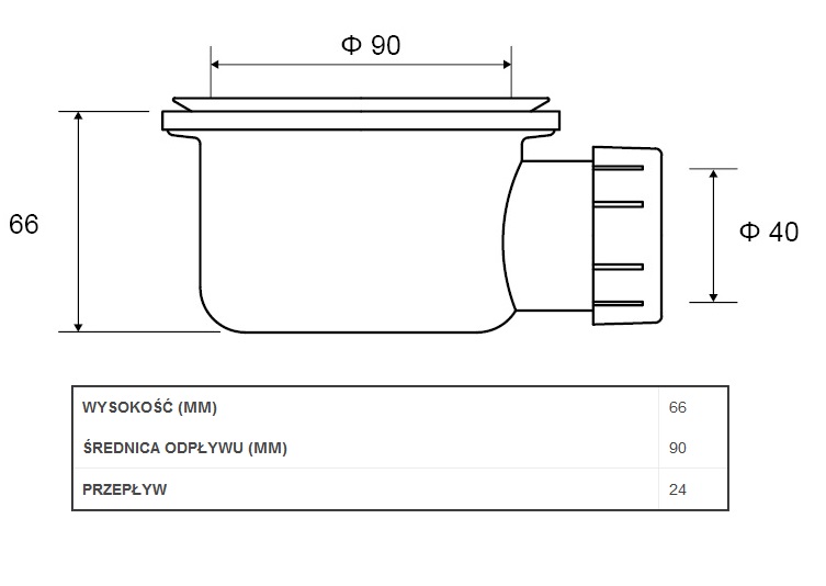 EXCELLENT ZERO SYFON BRODZIKOWY 90 mm, NISKI BEZ POKRYWY INEX.1616.90