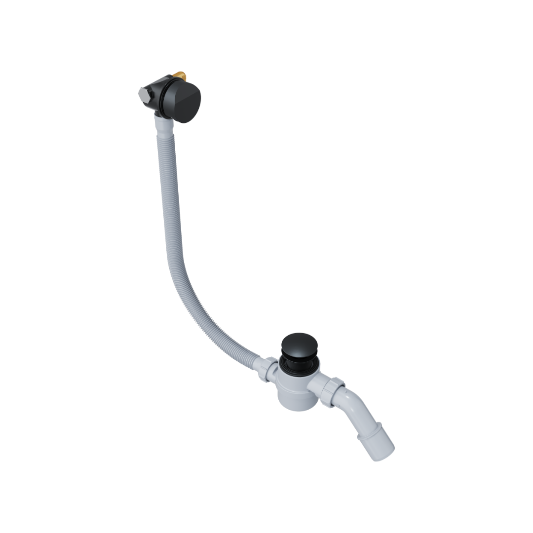 Hover syfon wannowy z napełnianiem czyszczony od góry, rozmiar do każdej wanny, czarny mat