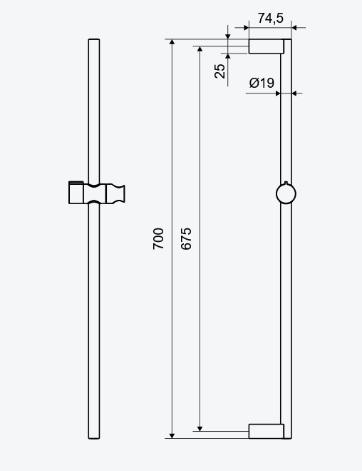 Składa sie z drążka o długości 700 mm oraz metalowego uchwytu na słuchawkę prysznicową.