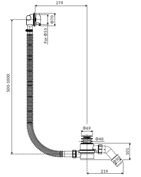 - Uniwersalność - rura odpływowa typu Flex pozwala na dopasowanie długości odpływu do każdej wanny