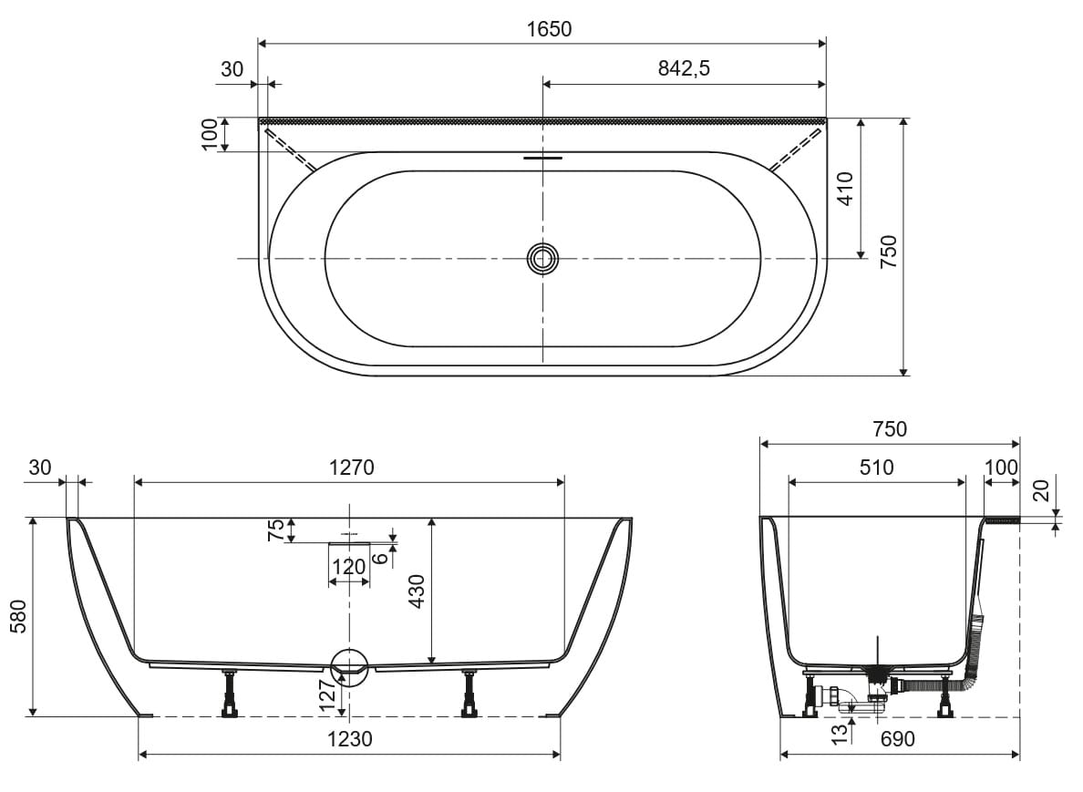 Elegancka wanna wolnostojąca przyścienna Oceana 2.0 o owalnym kształcie stwarza wrażenie, że zajmuje mało miejsca w łazience przy czym nawet najmniejszy model jest wystarczającą duży na komfortową kąpiel.