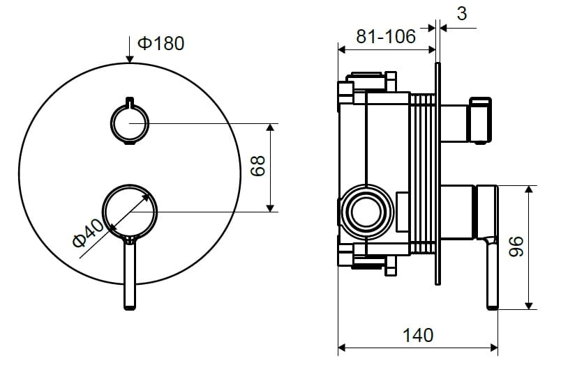 - Mechaniczny przełącznik funkcji: Umożliwia łatwy wybór między prysznicem a wanną.