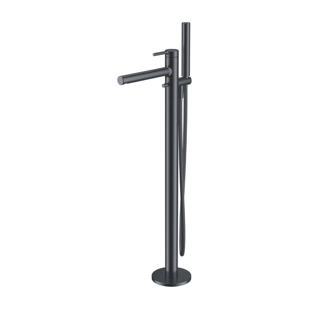 Odkryj niezwykły styl i funkcjonalność baterii wannowej wolnostojącej z serii Pi, wykończonej w najnowszym kolorze grafit szczotkowany. Dzięki zaawansowanej głowicy Hydroplast oraz wygodnemu mechanicznemu przełącznikowi funkcji słuchawka-wylewka, jest to idealne rozwiązanie dla eleganckich wanien wolnostojących.
