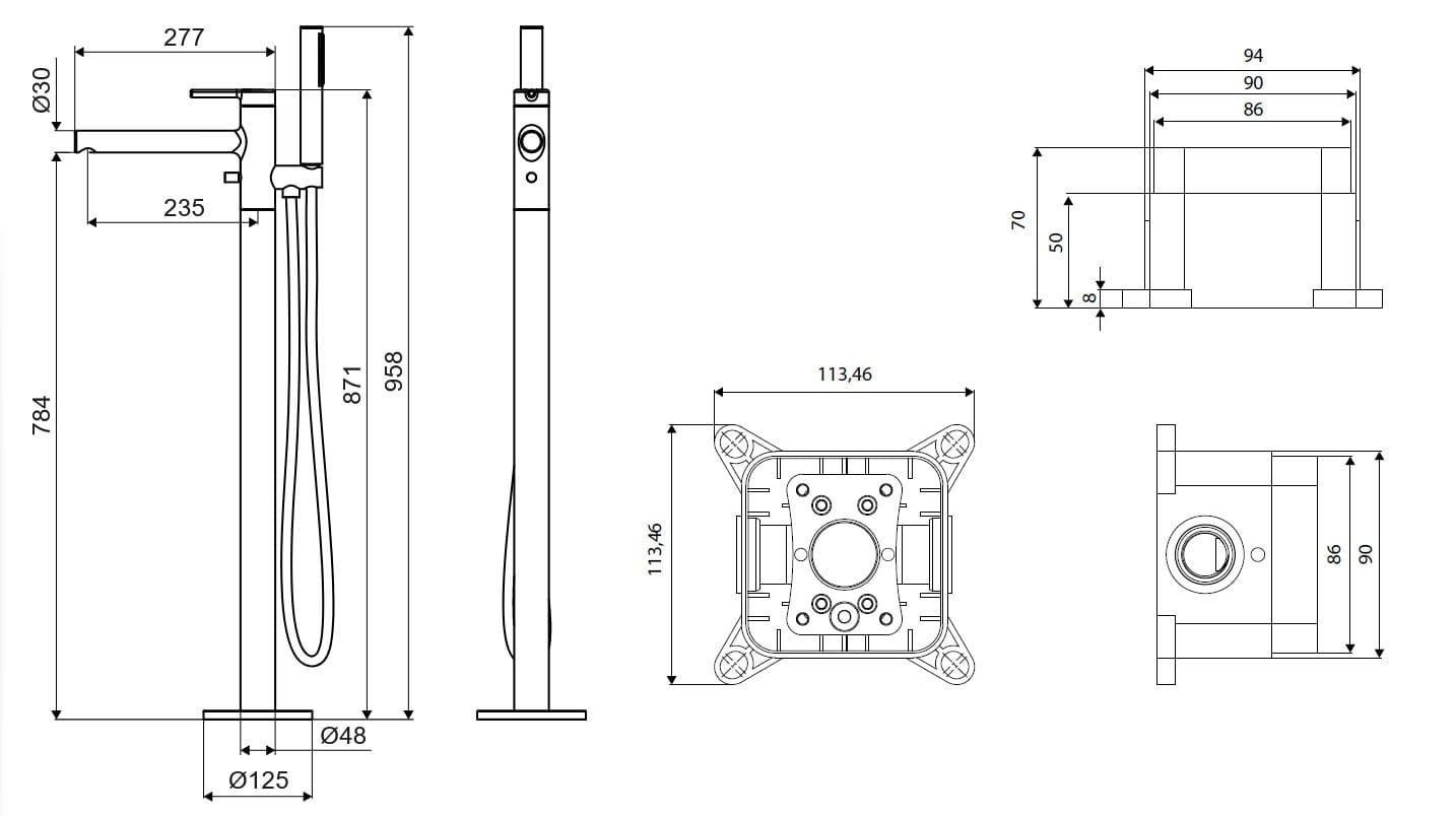 Bateria wannowa wolnostojąca z serii Pi to połączenie luksusu i innowacyjnych rozwiązań. Stworzona dla osób ceniących styl i najwyższą jakość, jej wyjątkowe wykończenie oraz funkcjonalność czynią ją doskonałym wyborem do nowoczesnych wnętrz. Seria Pi dostępna jest w 8 kolorach: chrom, biały mat, czarny mat, złoty połysk, złoty szczotkowany, miedziany szczotkowany oraz najnowszy grafit szczotkowany,nikiel szczotkowany.