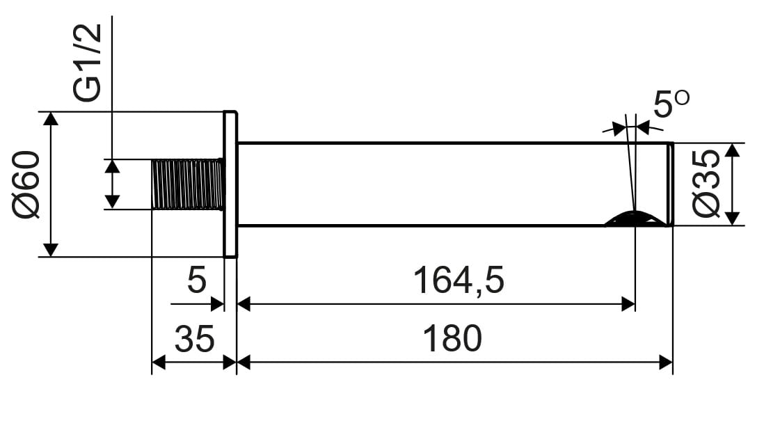 Wylewka wannowa Pi wykonana jest z mosiądzu. Posiada wysięg wylewki 164,5 mm, dzięki temu może być z powodzeniem stosowana do napełniania większości wanien z oferty Excellent (minimalna długość wylewki baterii ściennej podana jest w tabeli charakteryzującej każdą wannę). Posiada perlator Neoperl.