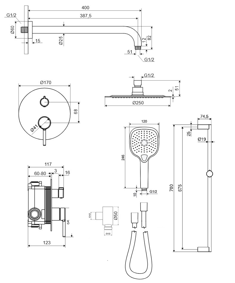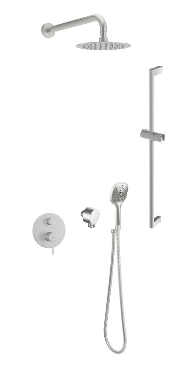 Podtynkowy zestaw Pi obejmuje 2-funkcyjną baterię prysznicowo-wannową z systemem Fix-Box, który ułatwia montaż oraz zapewnia stały dostęp rewizyjny do mechanizmu. W skład kompletu wchodzi również górna deszczownica Slim o średnicy 25 cm z silikonowymi wypustkami, wzmocnione ramię prysznicowe oraz zestaw punktowy z uchwytem na słuchawkę, elegancką słuchawką prysznicową ze zmianą strumienia i wężem.