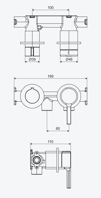 Zestaw przeznaczony jest do montażu podtynkowego, co pozwala na estetyczne ukrycie elementów instalacyjnych i uzyskanie uporządkowanego wyglądu ściany. Dzięki możliwości konfiguracji poszczególnych elementów zestaw można łatwo dopasować do układu łazienki, zarówno w przestronnych salonach kąpielowych, jak i w mniejszych wnętrzach.