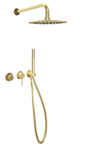 Pi Zestaw prysznicowo-wannowy podtynkowy, 2 funkcyjny z deszczownicą 25 cm, złoty połysk