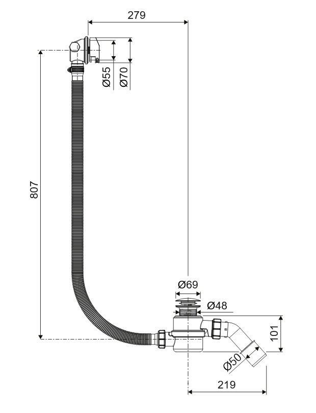 Elastyczna instalacja – rura odpływowa typu Flex pozwala na łatwe dopasowanie długości odpływu do każdej wanny.