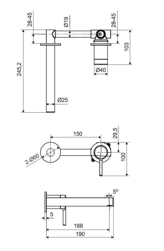Bateria umywalkowa podtynkowa posiada wylewkę o zasięgu 188mm, może być instalowana na wymaganej wysokości nad umywalką. Dzięki temu z powodzeniem może być stosowana do umywalek nablatowych bez otworu na baterię. Posiada głowicę Kerox. Jej idealnym uzupełnieniem będą korki z serii Classic lub Design.