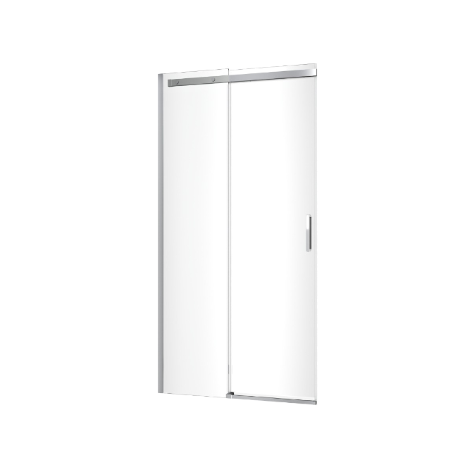 Drzwi wnękowe z przesuwnym systemem jezdnym wykonano ze szkła hartowanego grubości 8 mm, pokrytego dwustronnie nanopowłoką Clean Control, która ułatwia utrzymanie czystości powierzchni zarówno od wewnątrz, jak i na zewnątrz. Wygodę czyszczenia ułatwiają także płaskie mocowania przy drzwiach.