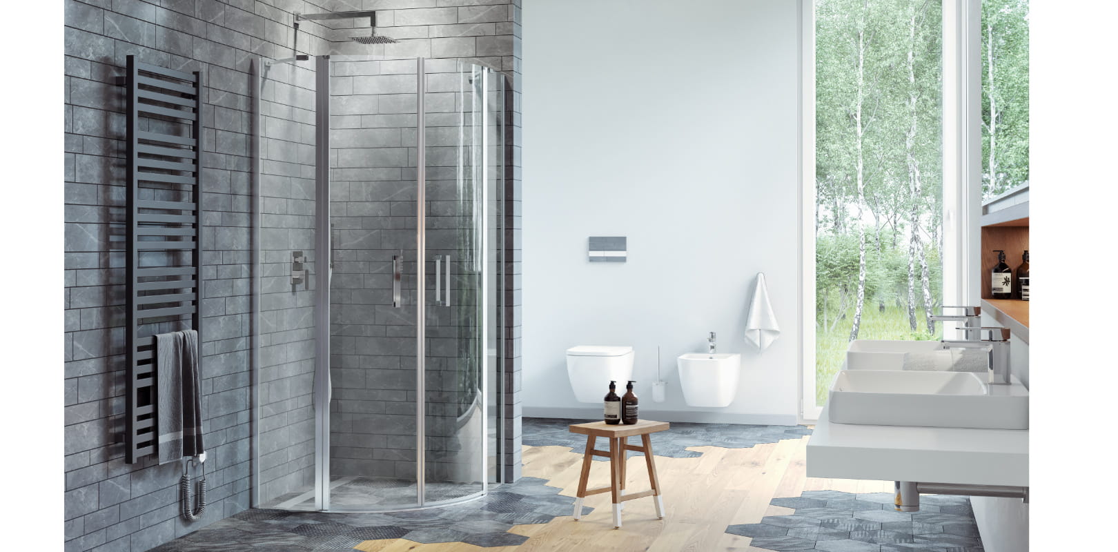 Excellent SERIA MAZO KABINA PÓŁOKRĄGŁA DRZWI WAHADŁOWE PODWÓJNE ZE ŚCIANKĄ STAŁĄ 90X90 cm LEWA/PRAWA