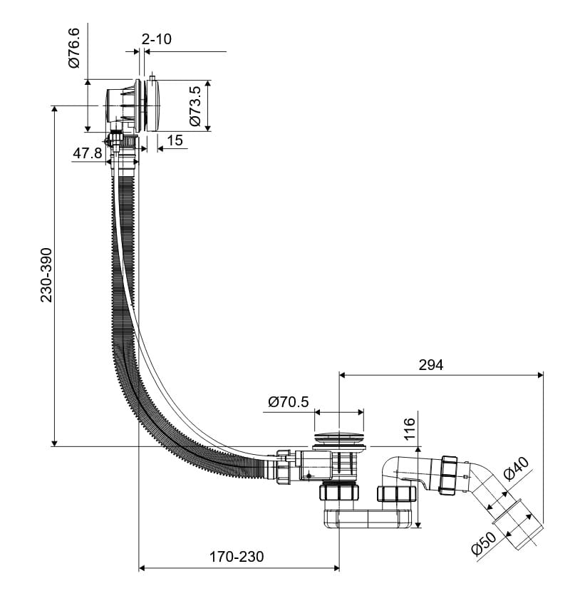 Łatwość montażu i obsługi: Simple 2.0 występuje w dwóch rozmiarach; z cięgnem 57 cm i 80 cm- co pozwala wykorzystać produkt do większości wanien do zabudowy dostęnych w ofercie Excellent. Montaż jest prosty i intuicyjny, co oznacza, że możesz się cieszyć nowym syfonem bez konieczności długotrwałych lub skomplikowanych instalacji.