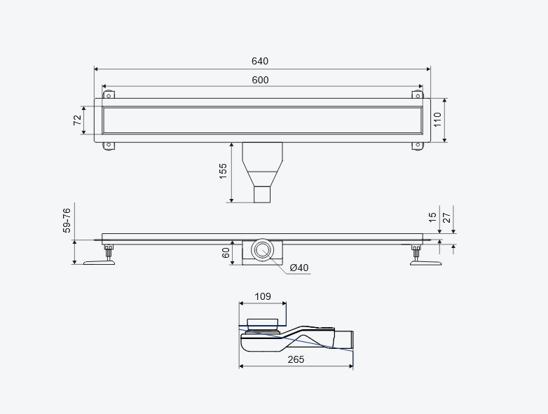 Odpływ dostosowany jest do płytek o standardowej grubości 8-12 mm.
