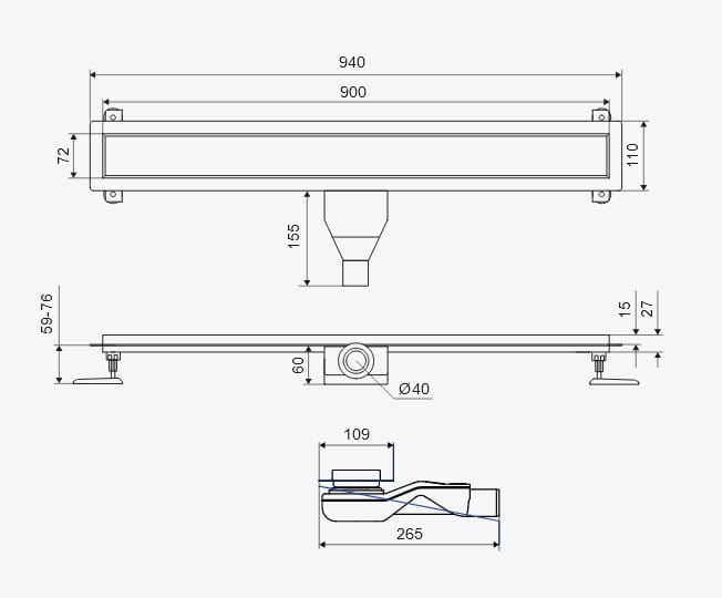 - Długość odpływu: 90 cm