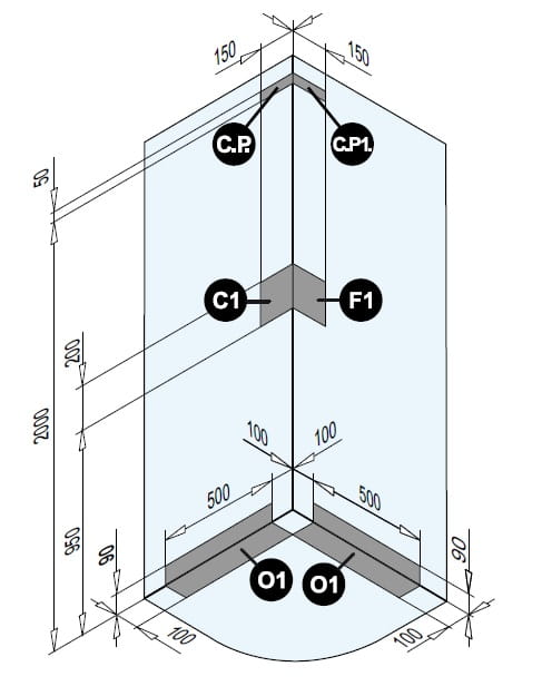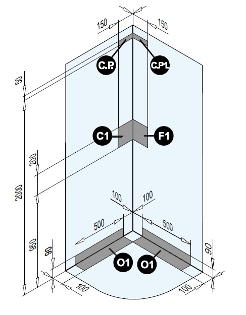 Szerokość części stałej drzwi: 375/375 mm