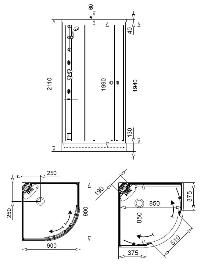 Glass1989 Archimede kabina parowa 90x90 cm półokrągła sauna,chromoterapia,bluetooth