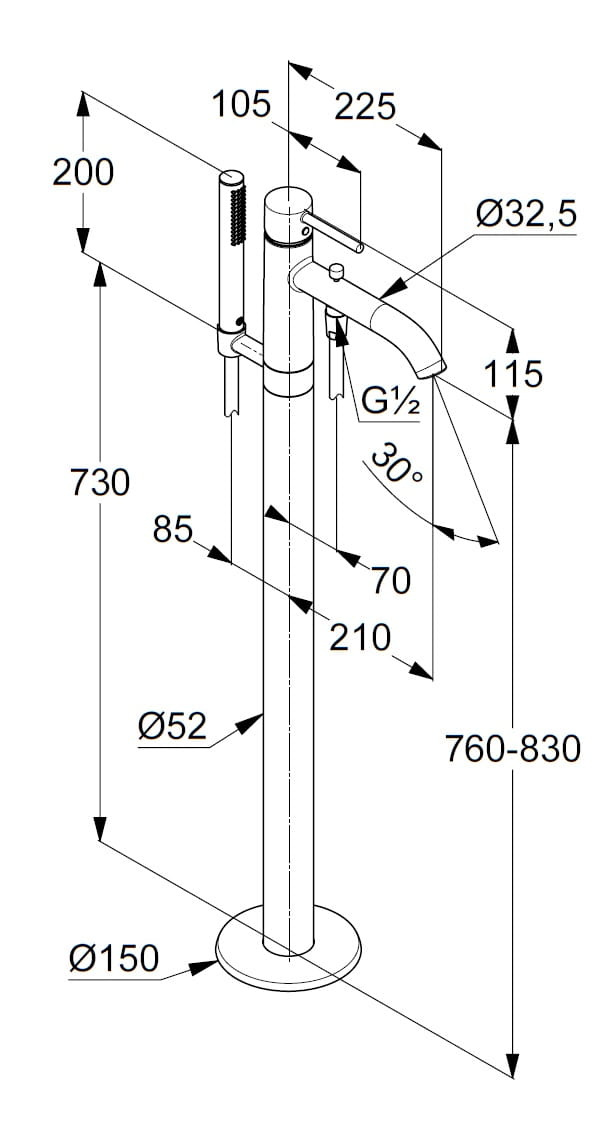 - G 1/2 x G 1/2 x 1250 mm