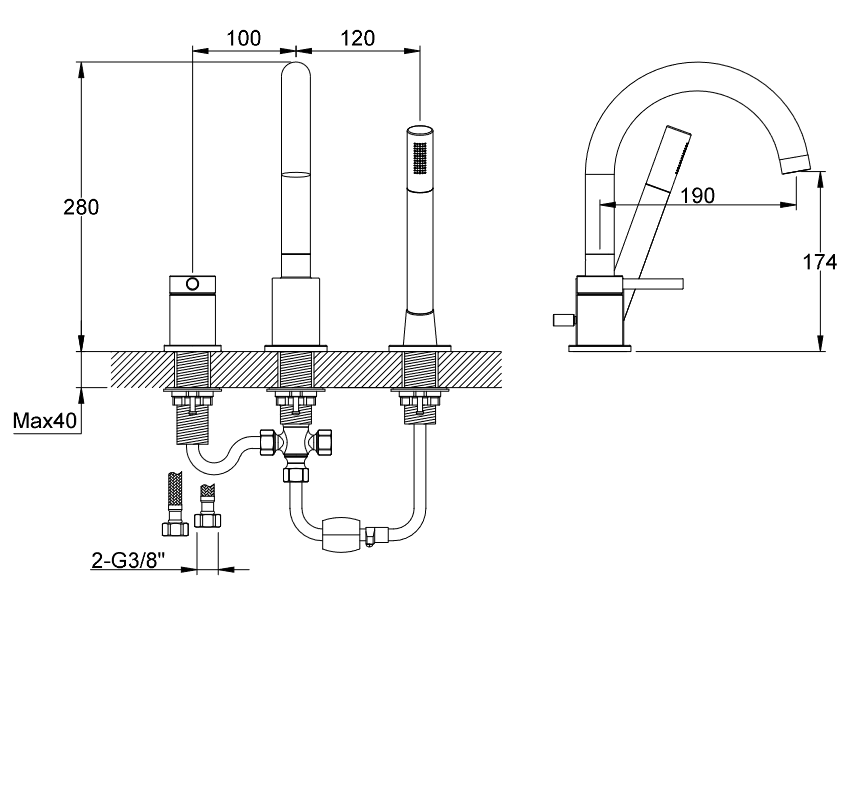 Rodzaj: WANNOWA 3-OTWOROWA