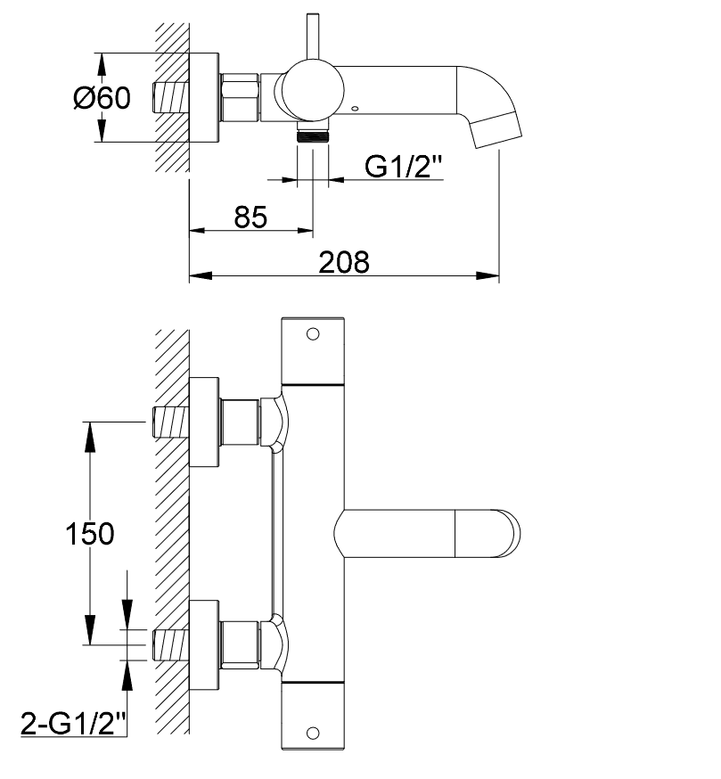 KOHLMAN AXEL BATERIA WANNOWA ŚCIENNA Z TERMOSTATEM CHROM QW710A