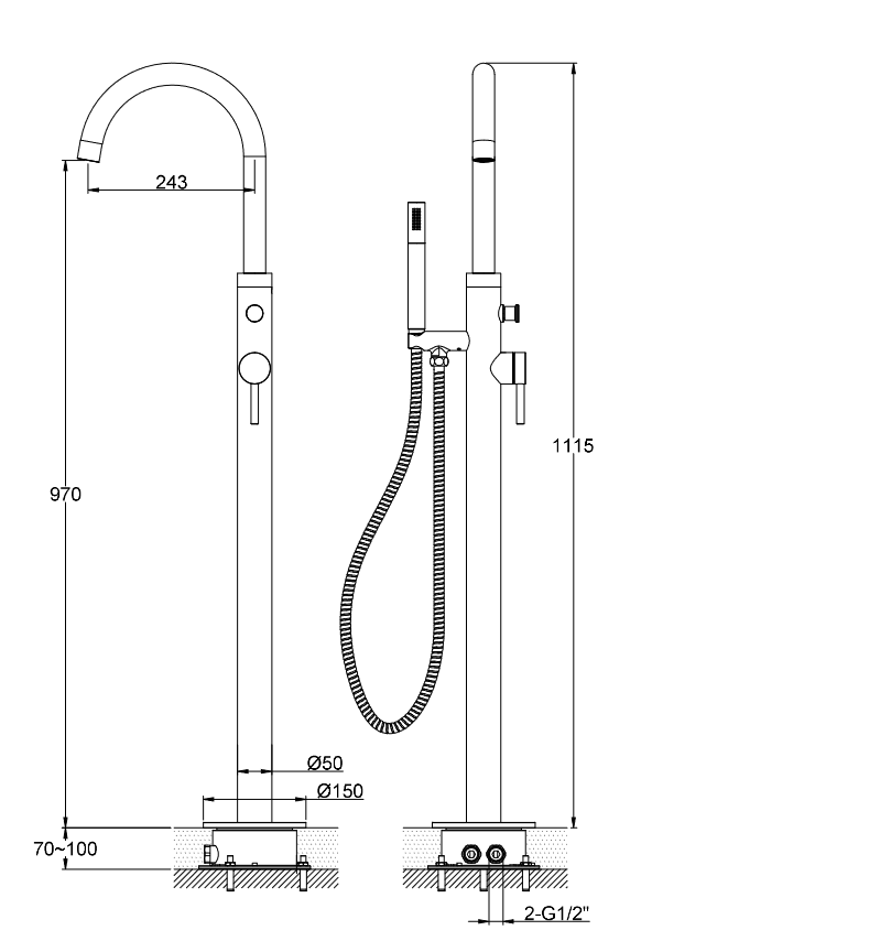KOHLMAN AXEL BATERIA WANNOWA WOLNOSTOJĄCA OBROTOWA WYLEWKA CHROM QF1165AB