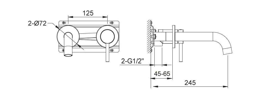 - długość wylewki zależy od głębokości montażu 180-200 mm
