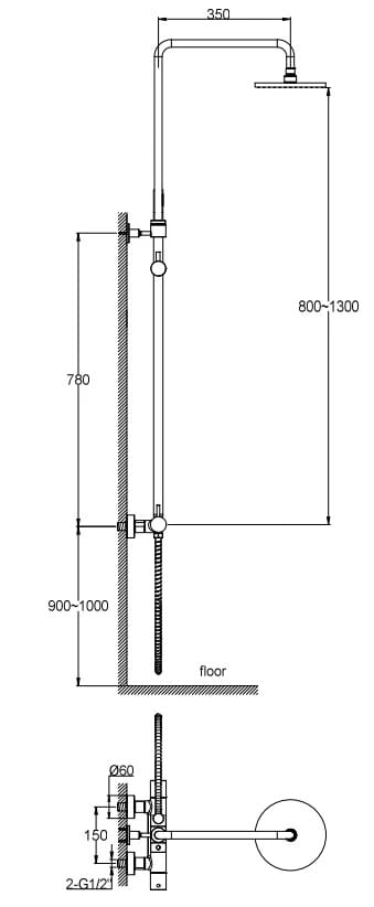 KOHLMAN AXEL GRAY Zestaw prysznicowy natynkowy z bateria termostatyczną QW273AG