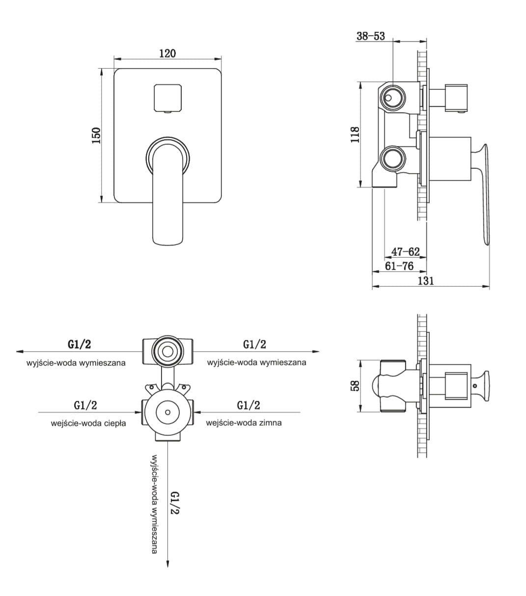 Montaż: PODTYNKOWY