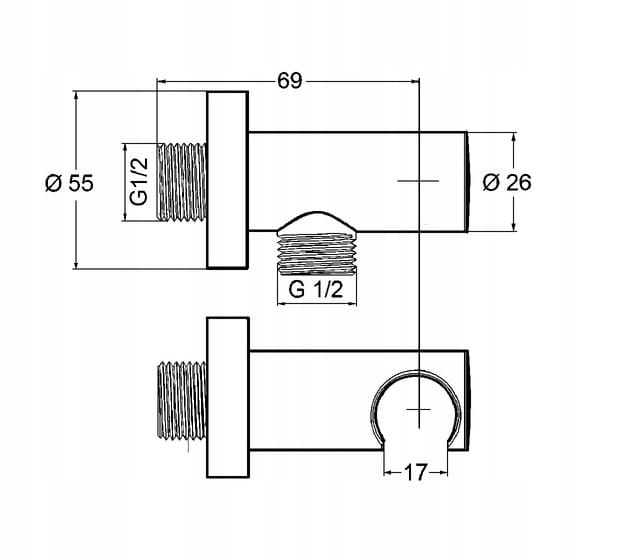 Kludi A-QA przyłącze kątowe zintegrowane z mocowaniem punktowym słuchawki