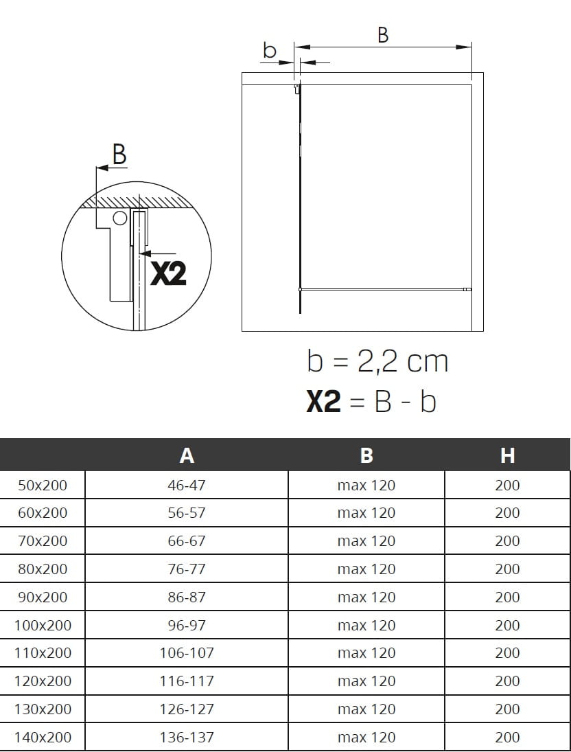 kabina typu walk-in, bezpieczne hartowane szkło 6mm lub 8 mm pokryte powłoką ochronną Active Shield