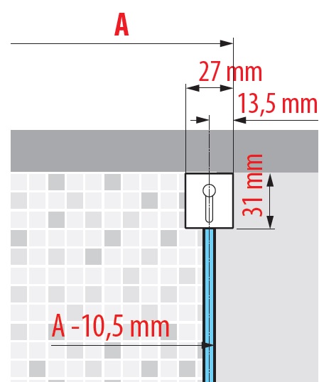 Przy montażu na podłodze wymiary do osi szkła poniżej(najczęściej początki spadków)