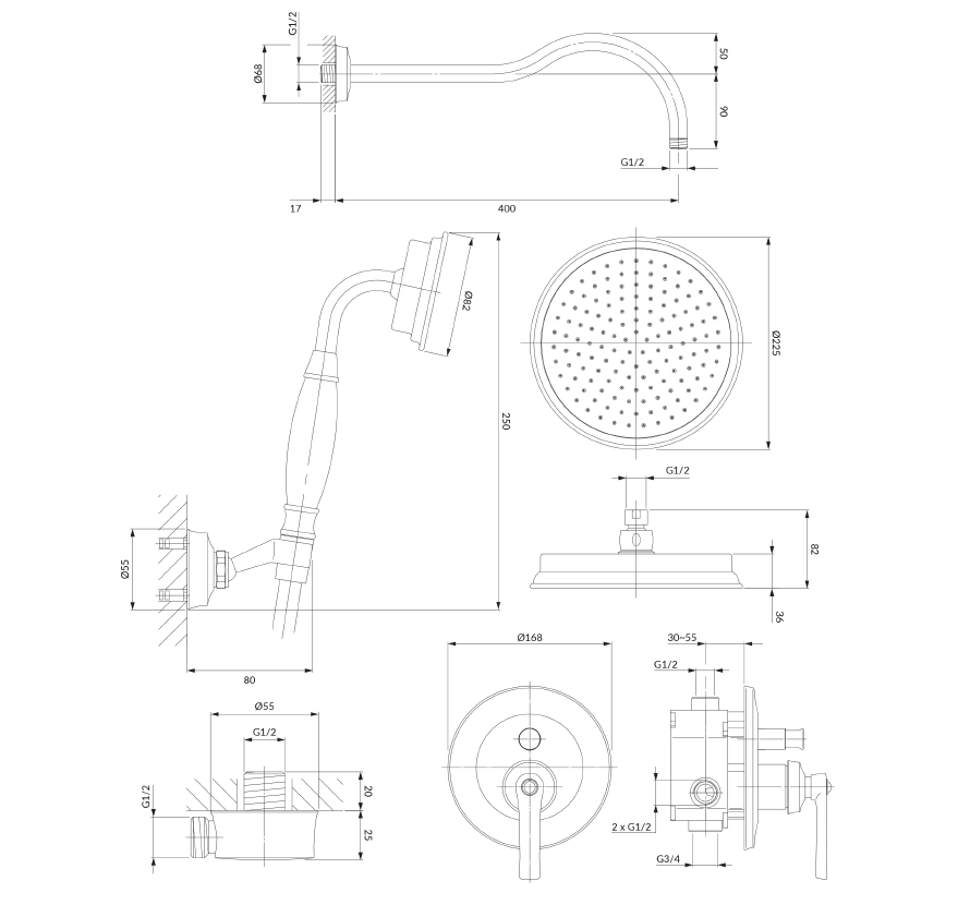 - zestaw prysznicowy punktowy (ARMANCE-PGL), 1-funkcyjny