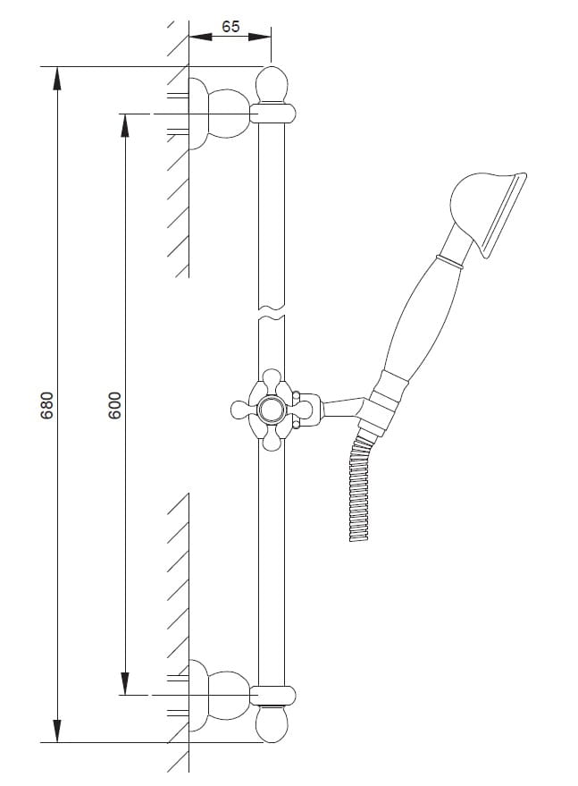 - drążek prysznicowy mosiężny, długość: 68 cm, rozstaw mocowań: 60 cm