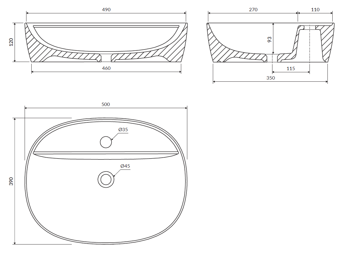 ATLANTA | umywalka nablatowa 51 X 39 cm