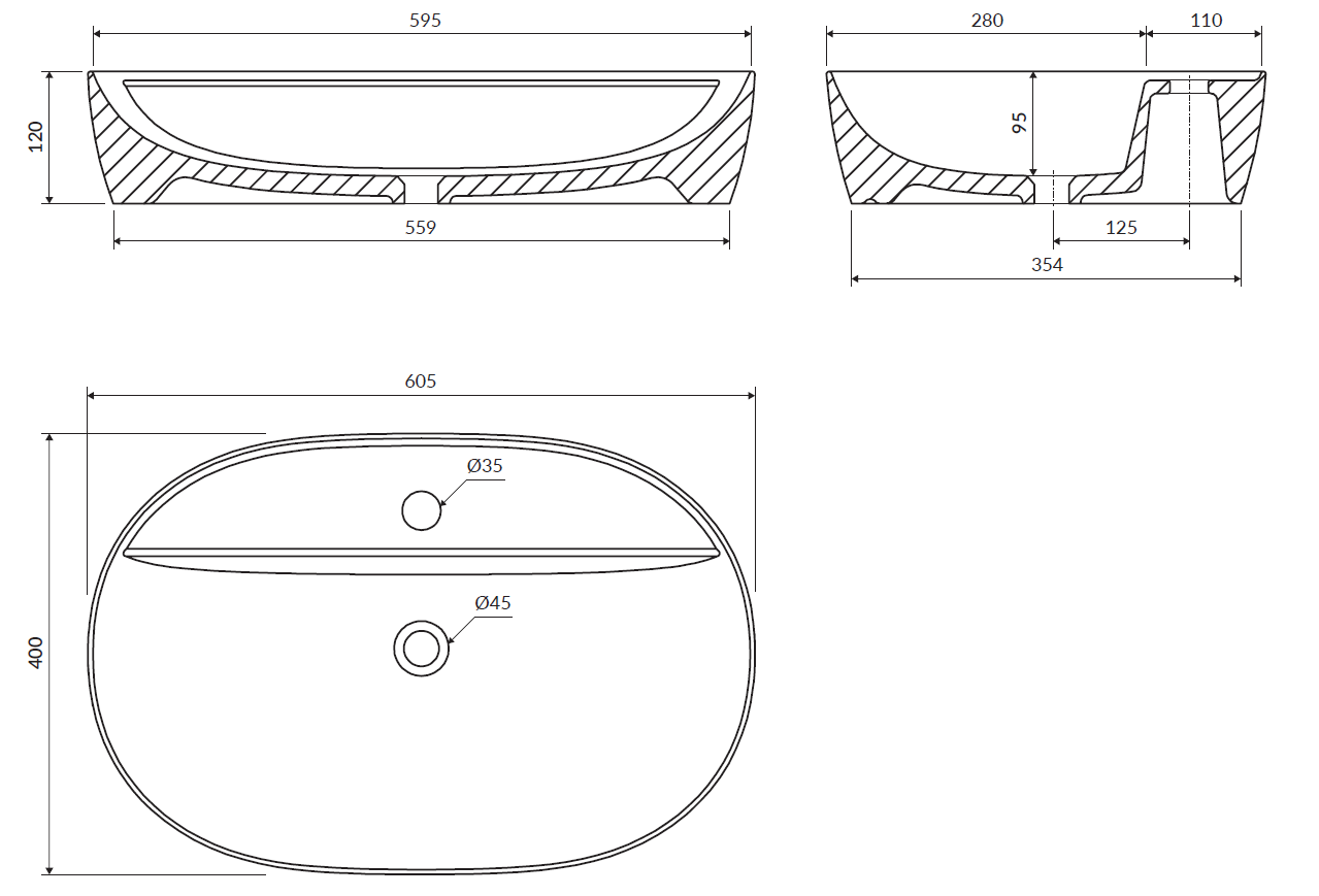 ATLANTA | umywalka nablatowa 61 X 40 cm