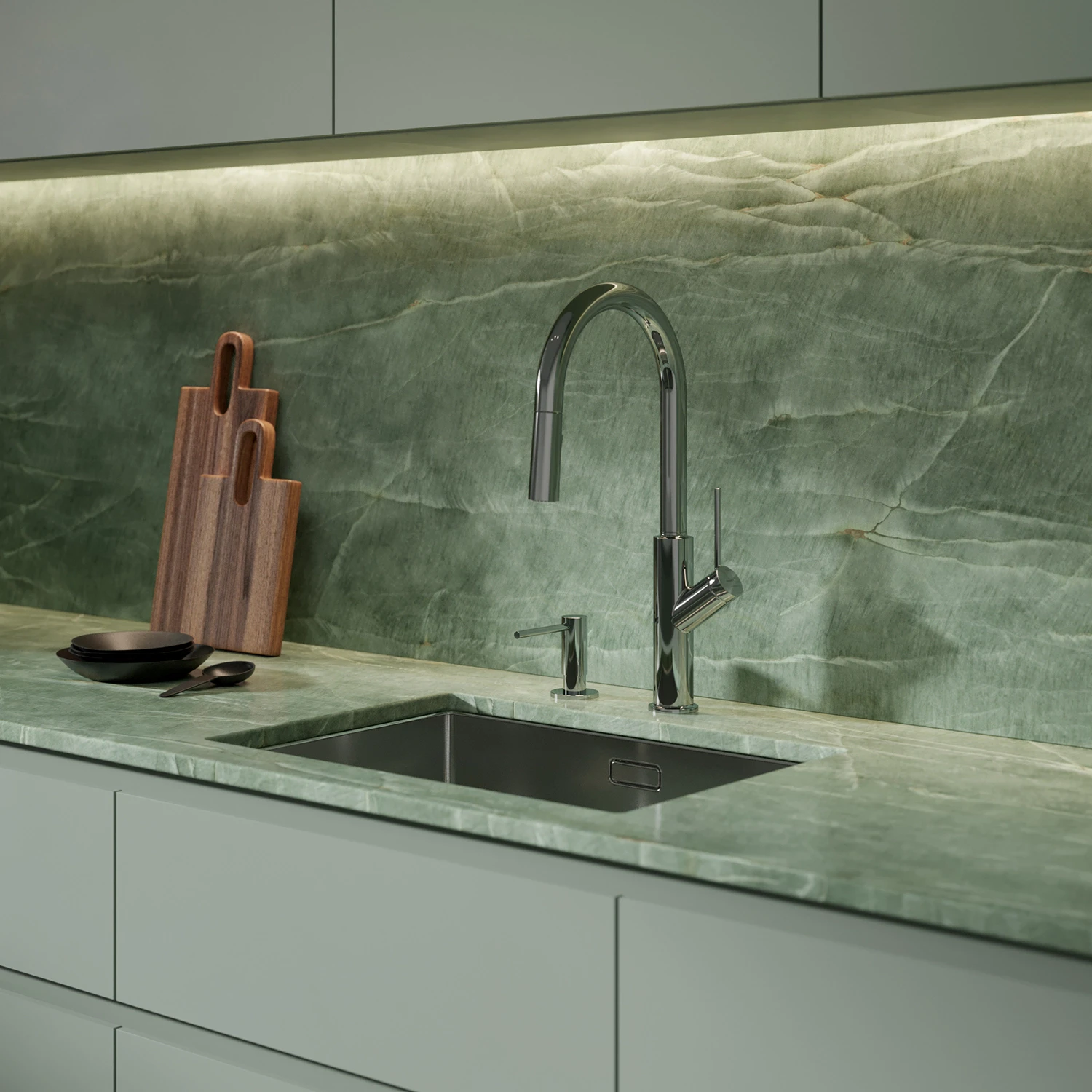 Kolekcja BEND wyróżnia się piękną, minimalistyczną formą, opartą na harmonii okręgów i łuków. Baterie wyposażone są w obrotową, wyciąganą wylewkę z dwufunkcyjnym prysznicem, co zwiększa zasięg strumienia wody i podnosi komfort użytkowania. Bateria została wyposażona w najwyższej jakości głowicę ceramiczną, a zastosowane innowacyjne rozwiązania technologiczne pozwalają zredukować zużycie wody o połowę, zapewniając jednocześnie najwyższy komfort użytkowania.