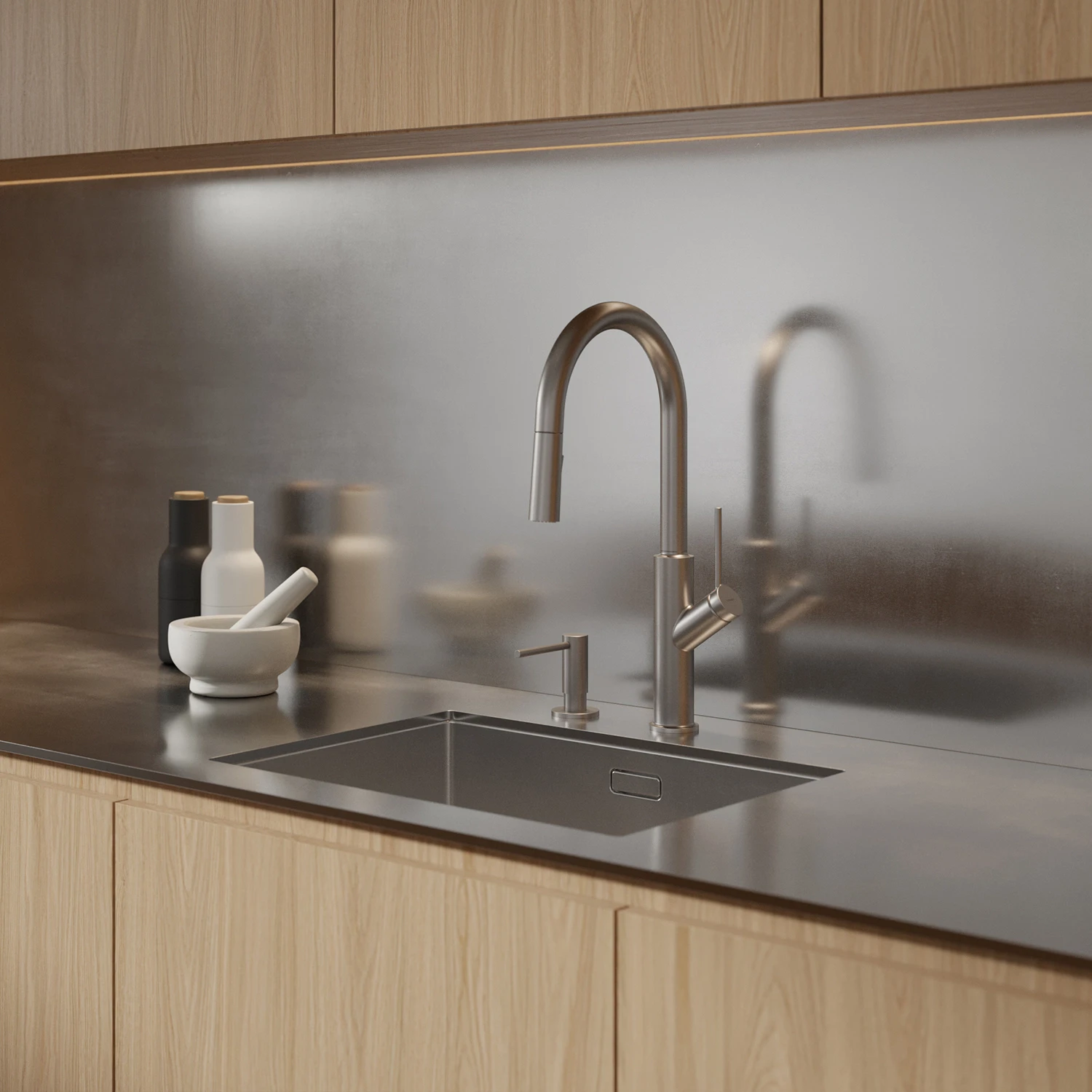 Nikiel jest industrialnym wykończeniem o srebrzystej barwie i satynowej, szczotkowanej powierzchni. Powłoka została wykonana w zaawansowanej technologii PVD.